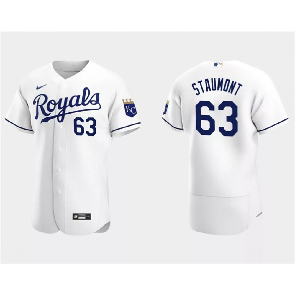 Men's Kansas City Royals #63 Josh Staumont White Flex Base Stitched MLB Jersey