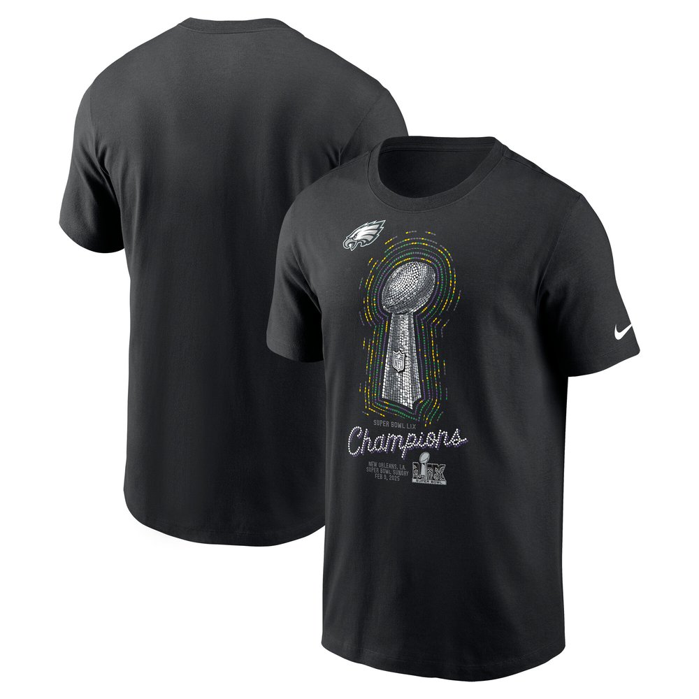 Men's Philadelphia Eagles Black Super Bowl LIX Champions Lombardi Trophy T-Shirt