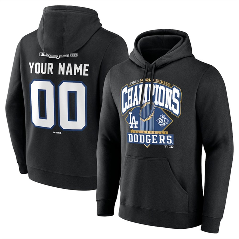 Men's Los Angeles Dodgers Black 2025 World Series Champions Custom Black Name & Number Hoodie
